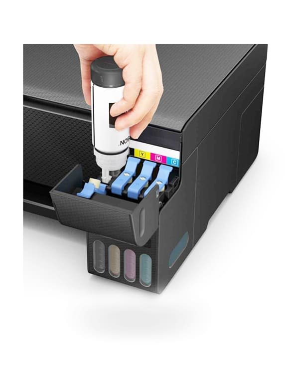 La impresora multifuncional 3 en 1 Epson EcoTank L3250 redefine la impresión para familias, estudiantes y profesionales, ofreciendo un costo de impresión extraordinariamente bajo. Con la capacidad de imprimir hasta 4.500 páginas en negro o 7.500 páginas a color con cada juego de botellas de repuesto, garantiza un rendimiento excepcional a un precio asequible. La tecnología Heat-Free de Epson asegura una fiabilidad total, mientras que la experiencia de recarga se simplifica con la tecnología EcoFit™, que ofrece un proceso limpio y sin errores.